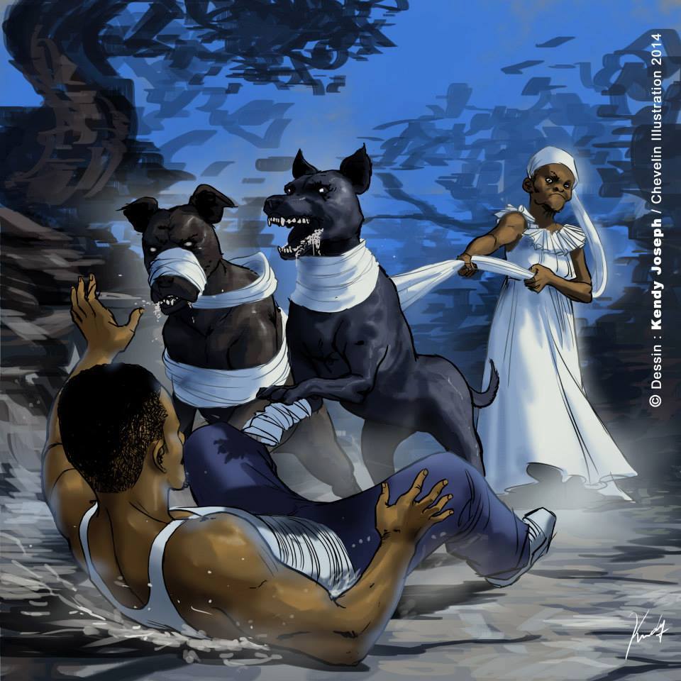 Ses illustrations nous plonge dans le monde imaginaire d’Haïti. On y retrouve des histoires de sirènes, de pirates, d’esprits de nuit, des transformations. Rappelez vous combien de fois nous avons entendu lors des repas de famille, des histoires sur la voisine qui s’est transformée en chien ou autre animal. Il y a une familiarité dans chacune des histoires contées.
